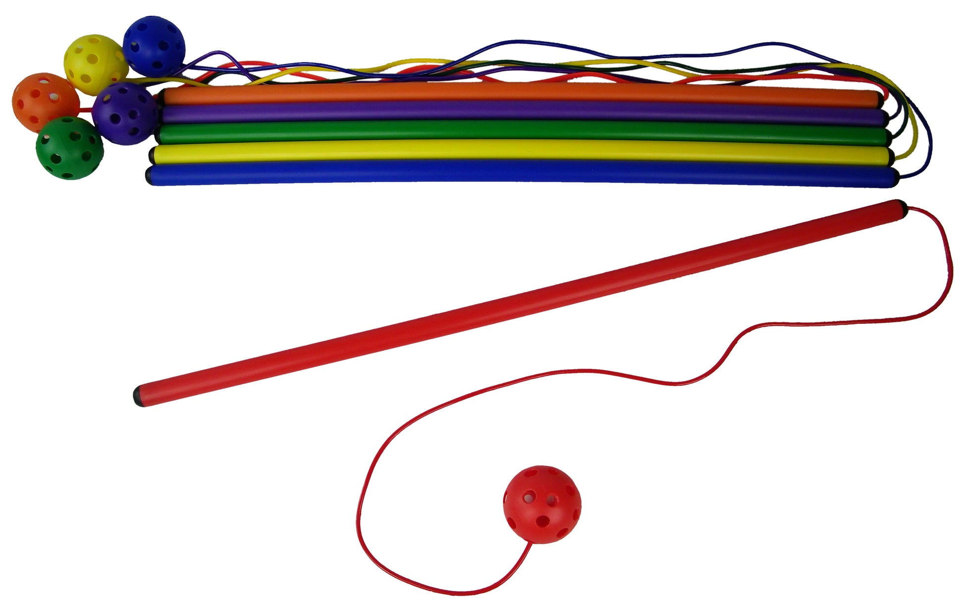 Plastic tube with perforated ball attached with PVC rope